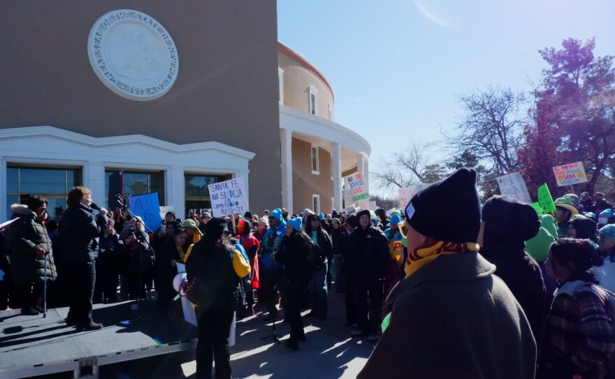 Anaya is one of the cosponsors of the Immigrant Safety Act. The contentious bill that would end New Mexico government contracts with ICE detention facilities passed its first committee last week. Although the rally was billed as a workers' rights rally, ICE enforcement and detention facilities were a consistent theme throughout the legislators' speeches.
