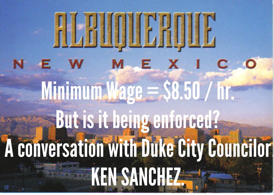 Among today's features after our local news: ABQ City Councilor Ken Sanchez tells KSFR he wants strict enforcement of the Duke City's minimum wage law. We also speak with Deborah Bussmeyer at the Con Alma Foundation and its quest to find worthy "healthcare heroes." Those items and more--plus 60 Seconds with Christopher Hagen.