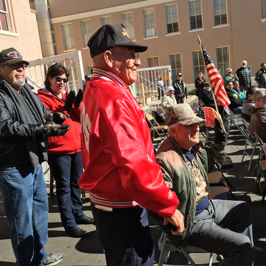 A small number of Santa Feans donned winter coats to waive at veterans parading downtown yesterday. As KSFR’s Deborah Martinez reports, some of those vets and their families had to leave a subsequent gathering at the Bataan Building before speeches began, because of a screeching fire alarm that interrupted the festivities.