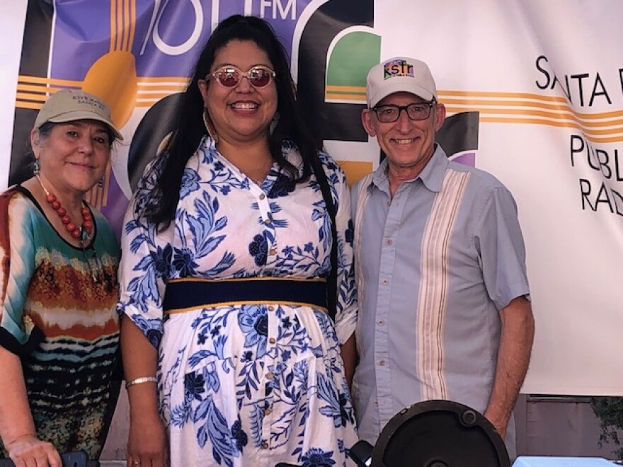 Tazbah McCullah (KSFR General Manager), Tara Gatewood (Host, Indigenous Foundation), Eric Davis (KSFR Content Director